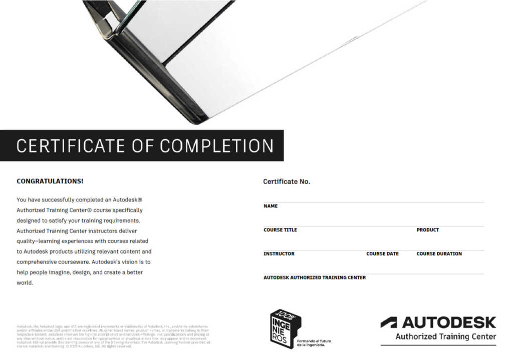Al completar satisfactoriamente un curso/programa en el que se apliquen herramientas de Autodesk, recibirás una certificación oficial emitida por Autodesk, validando tus competencias en el software trabajado.